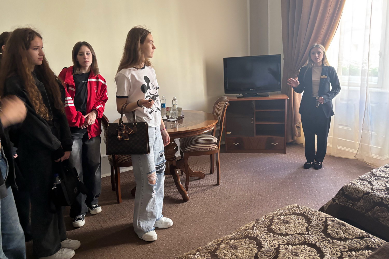 Під час візиту Юлія Кендзьора – менеджер готелю, ознайомила здобувачів з історією цього закладу, який є справжньою архітектурною та культурною пам’яткою. Особливу увагу було приділено ексклюзивним тематичним номерам, присвяченим видатним діячам культури. Зокрема, здобувачі дізналися про апартаменти, названі на честь Оноре де Бальзака та Івана Франка, які свого часу зупинялися у стінах готелю. Кожен із цих номерів зберігає атмосферу, що нагадує про життя та творчість великих постатей, і водночас відповідає сучасним стандартам комфорту.