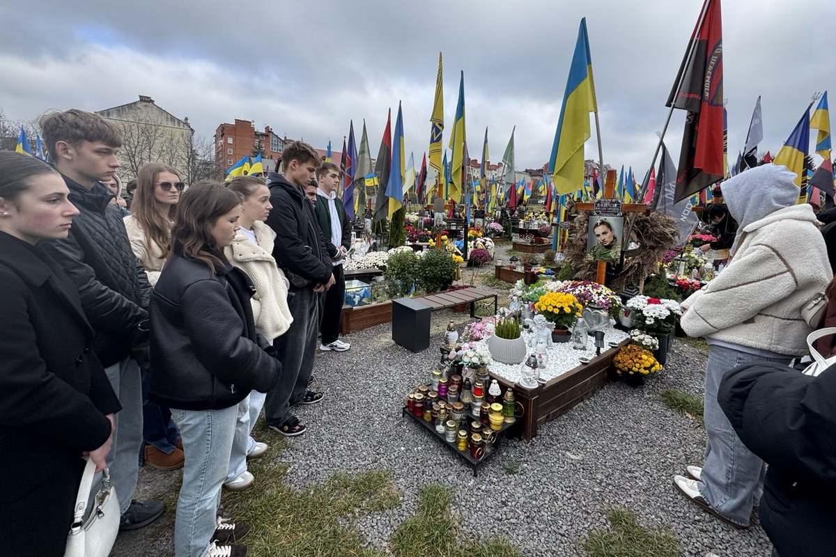 Після відвідин Личаківського цвинтаря здобувачі відвідали Марсове поле, де поховані Герої, що віддали своє життя за Україну. Біля кожної могили – державний прапор і вінки з жовто-блакитними стрічками. Тут панує спокій і глибока вдячність тим, хто присвятив життя українській справі. Майбутні бакалаври запалили свічки на могилах захисників-випускників нашого університету, а саме – Бойко Наталії та Кожана Тараса, вшановуючи їхню мужність і жертовність.