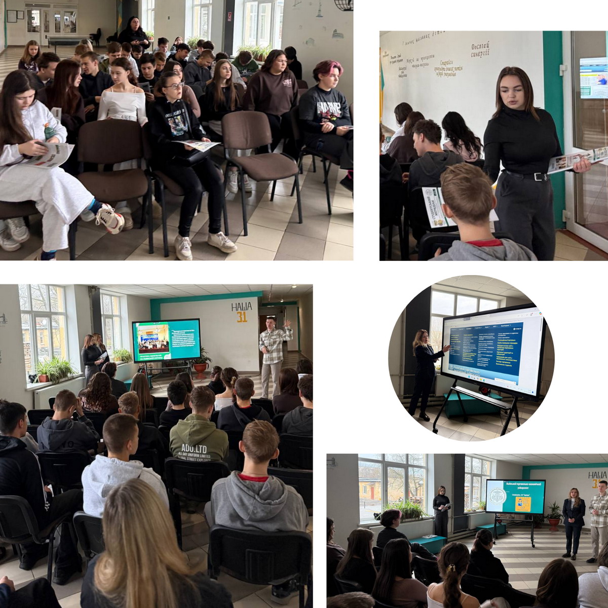За участі здобувачів ОПП “Митна справа”: Богдана Кодочігова, Христини Гоголь та Тетяни Мельник, а також заступником з практичної підготовки здобувачів та профорієнтаційної роботи, доцентом Ольгою Гиркою завершено серію профорієнтаційних заходів у ліцеях № 31, 66 та Ліцей ім. І. Пулюя міста Львова.