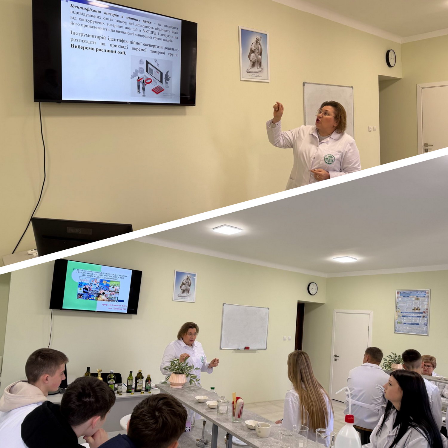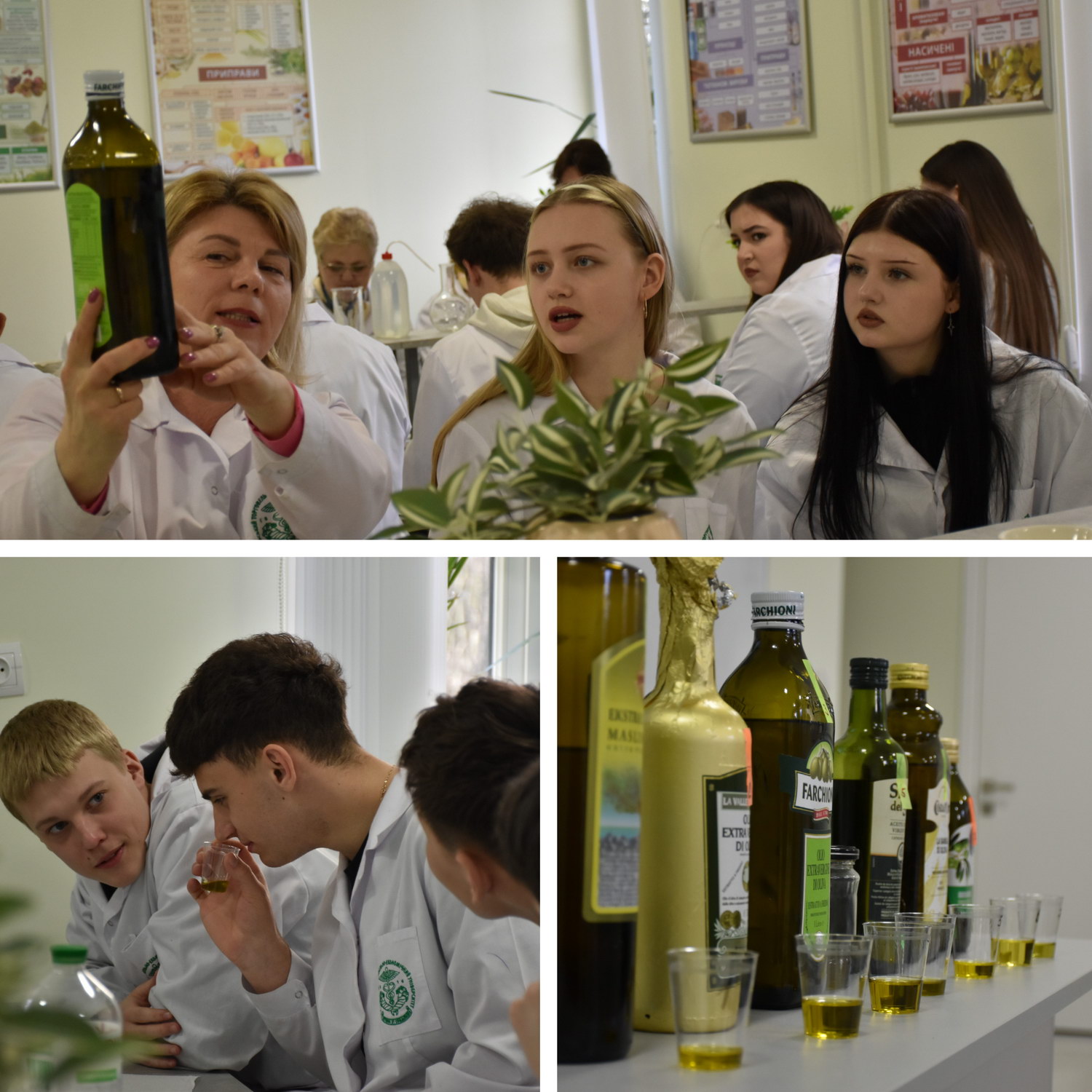 На наступному етапі майстер-класу керівник курсу «Ідентифікація та фальсифікація харчових продуктів» доцент Донцова І.В. ознайомила з методикою ідентифікації оливкової олії різних сортів, яка переміщується через митний кордон України.