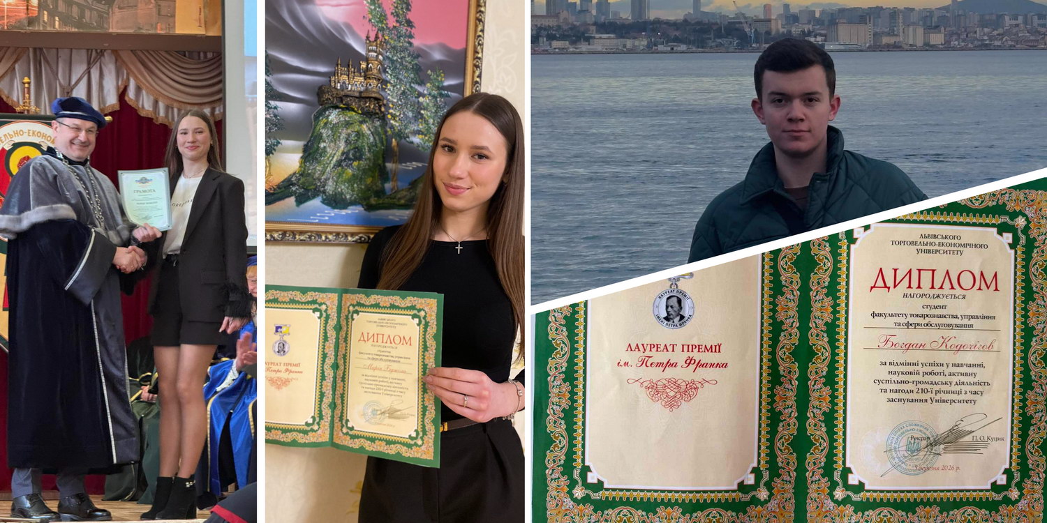 5 березня 2026 року з нагоди 210-ї річниці з часу заснування Львівського торговельно-економічного університету і за відмінні успіхи у навчанні, наукові роботі та активну суспільно-громадську діяльність здобувачі вищої освіти факультету товарознавства, управління та сфери обслуговування Кодочігов Богдан (спец. 076 «Підприємництво та торгівля», ОПП «Митна справа») та Бджола Марія (076 «Підприємництво та торгівля», ОПП «Товарознавство та експертиза в митній справі») стали Лауреатами премії імені Петра Франка.
