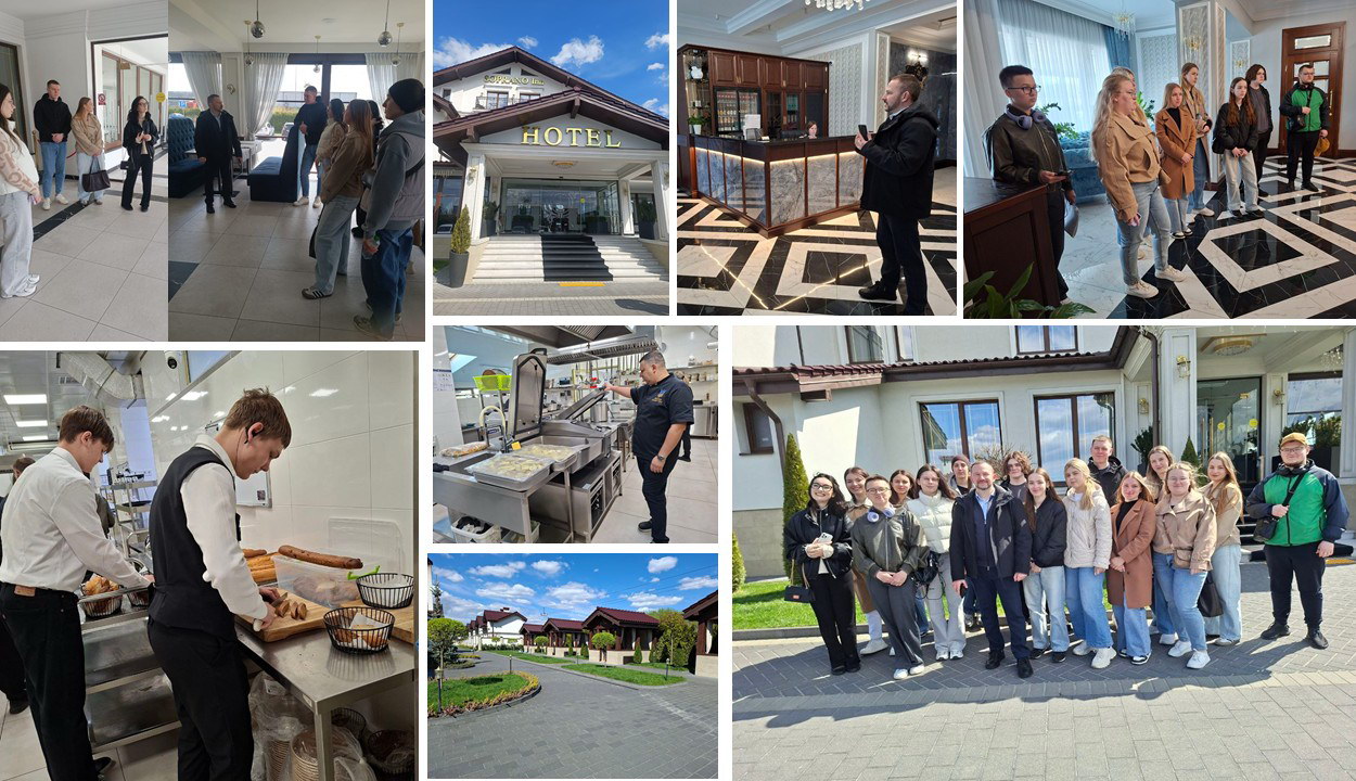Під час заняття здобувачі оцінили функціональні приміщення комплексу, відпрацювали навички ідентифікації номерного фонду та його оснащення, проаналізували практичні кейси організації обслуговування гостей. Чуєв Євген Романович, керуючий готельно-ресторанним комплексом, а також керівники обслуговуючих служб розповіли студентам про організацію праці персоналу та основні вимоги до нього.